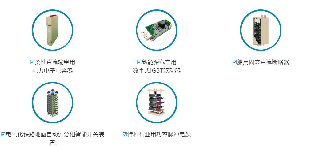10余个系列上百种产品,应用领域涵盖特高压直流输电、柔性直流输电、智能电网、电气化轨道交通、新能源发电、新能源汽车、工业电解冶金、化工、采矿等。