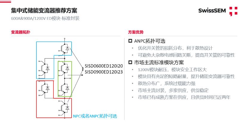 作为行业代表企业之一,赛晶半导体推出适用于集中式与组串式储能变流器的多款功率模块,包括1200V ED系列与FP封装模块,覆盖ANPC、NPC等主流拓扑结构,具备低杂散电感、高短路耐量及优良的散热性能,可满足不同功率等级的构网型PCS应用需求。