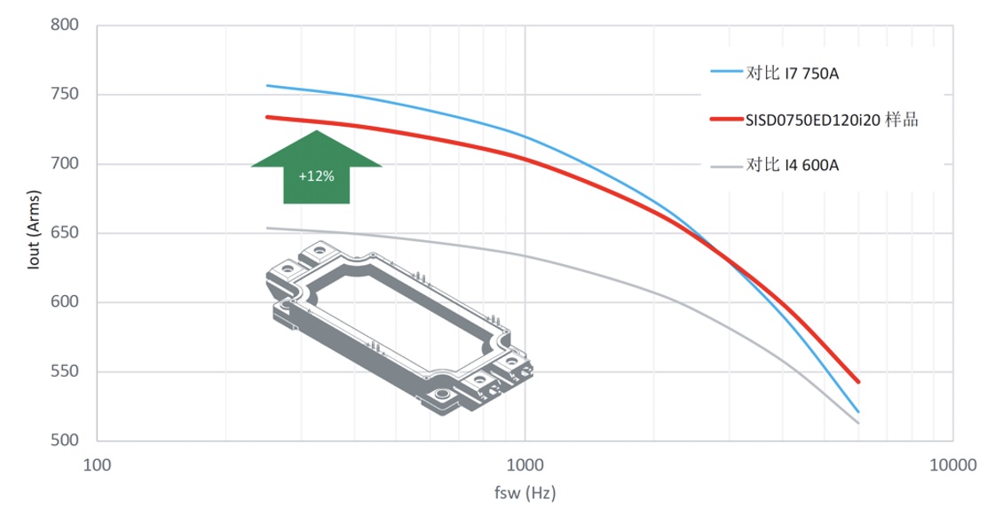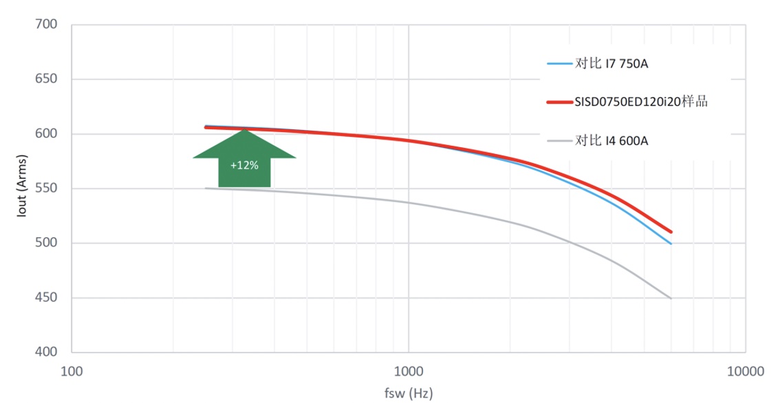为了在系统应用层面验证i20和d20芯片组的性能,将基于i20芯片组的ED型750A半桥模块与竞争对手i4-600A和i7-750A两款模块分别在整流模式和逆变模式进行了对比仿真。性能曲线图反映了逆变器输出功率(或电流)与开关频率的关系,仿真热阻值取自数据表,而器件的静态和动态损耗取自测量值。逆变工况下,ED-750A额定模块在最坏的情况下比最先进的i7 740A模块功耗低3%,当开关频率直到3kHz时达到平衡。而与目前应用居多的i4-600A模块相比,ED型模块能够提升超过10%的性能。在整流器模式下,体育滚球投注ED模块的性能与最新的i7-750A模块基本一致,相比i4-600A模块相比,性能同样可以提高10%以上。