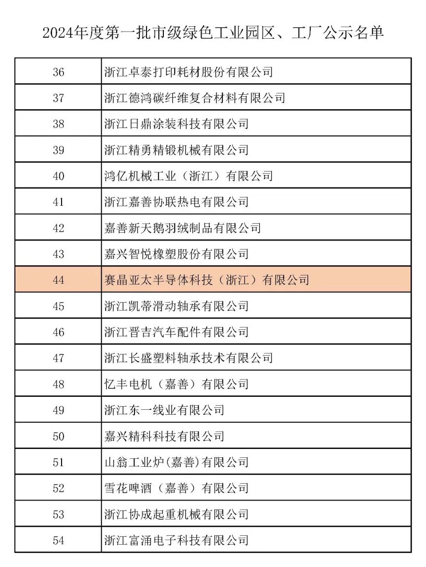 浙江省嘉兴市经济和信息化局日前公布了《2024年度第一批市级绿色工》的公示名单,体育滚球投注子公司”赛晶半导体公司“荣誉上榜,获评“绿色工厂”称号。这是对赛晶坚持践行“以反水投注网站,推动绿色能源发展”的认可与肯定,更是全方位彰显了赛晶的“绿色智造实力”。