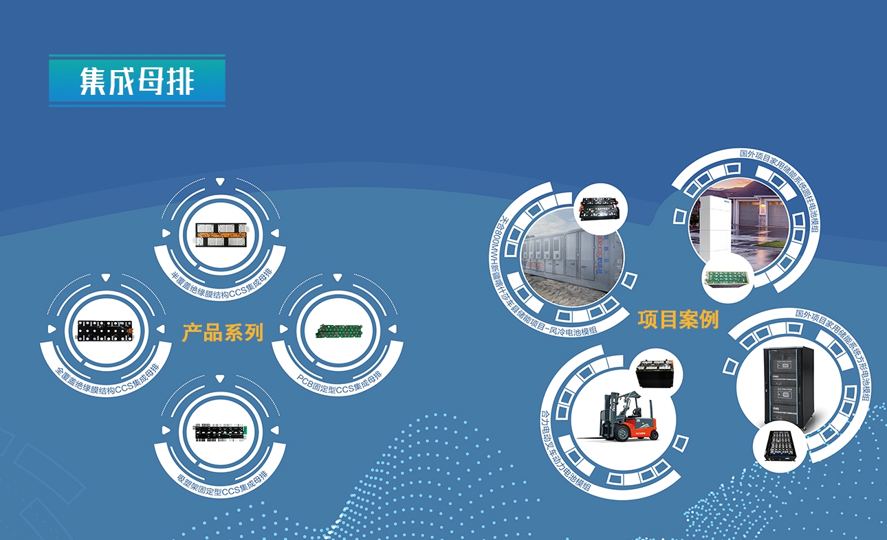 赛晶集成母排广泛应用于动力电池模组、大储风冷电池模组、大储液冷电池模组和家用储能电池模组等领域,它提供电池的温度采样、电芯电压采样功能并且实现电芯高压串并联,具有电池动力传输、信号采集( 电压监测、温度监测 )、电芯保护、产品轻便、结构占空间小、便于实现自动化等特点。