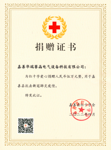 疫情无情,人间有爱。面对嘉善突如其来的疫情防控遭遇战,体育滚球投注成员企业 嘉善华瑞赛晶电气设备科技有限公司(以下简称:嘉善华瑞赛晶)在万众一心抗击疫情的关键时刻,为疫情捐款,尽企业所能全力支援疫情防控,为抗击疫情贡献企业力量。以实际行动践行社会责任,以温情与温暖夯实坚强有力的“大后方”。