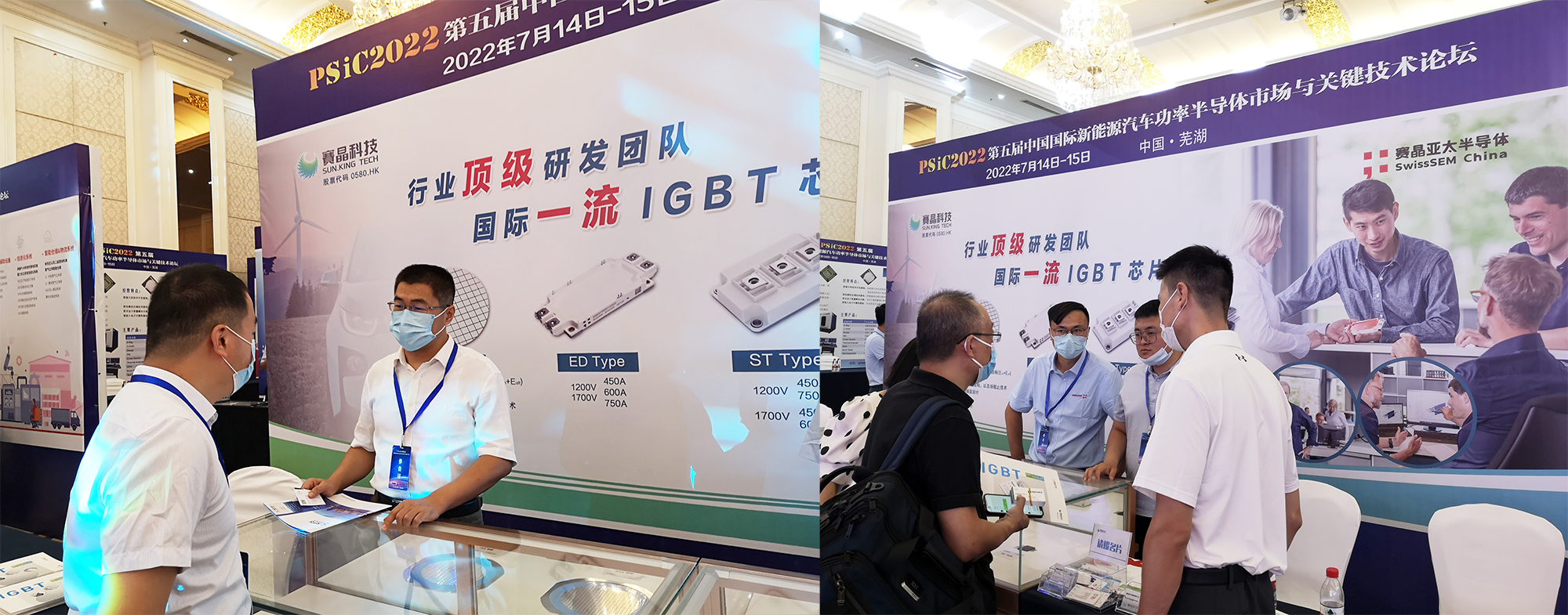论坛同期展览,赛晶展出i20 IGBT芯片、d20 FRD芯片、ED封装模块、ST封装模块以及EV封装模块样品,引发与会专业人士广泛关注,现场火爆程度超乎预期。许多与会专业人士纷纷到赛晶展位参观和咨询,与现场技术、销售人员进行了深入的交流,并对赛晶将推出的新品抱有极大期许。