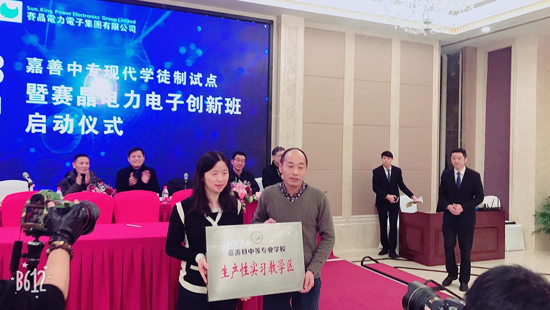 2018年1月25日,赛晶电力电子创新班启动仪式在浙江嘉善举行。启动仪式由嘉善中专副校长蒋怀长主持,赛晶集团行政人事副总裁任洁致词、嘉善中专校长冯军致词,嘉善县教育局、人社局、经信局等相关领导出席并发表了重要讲话。