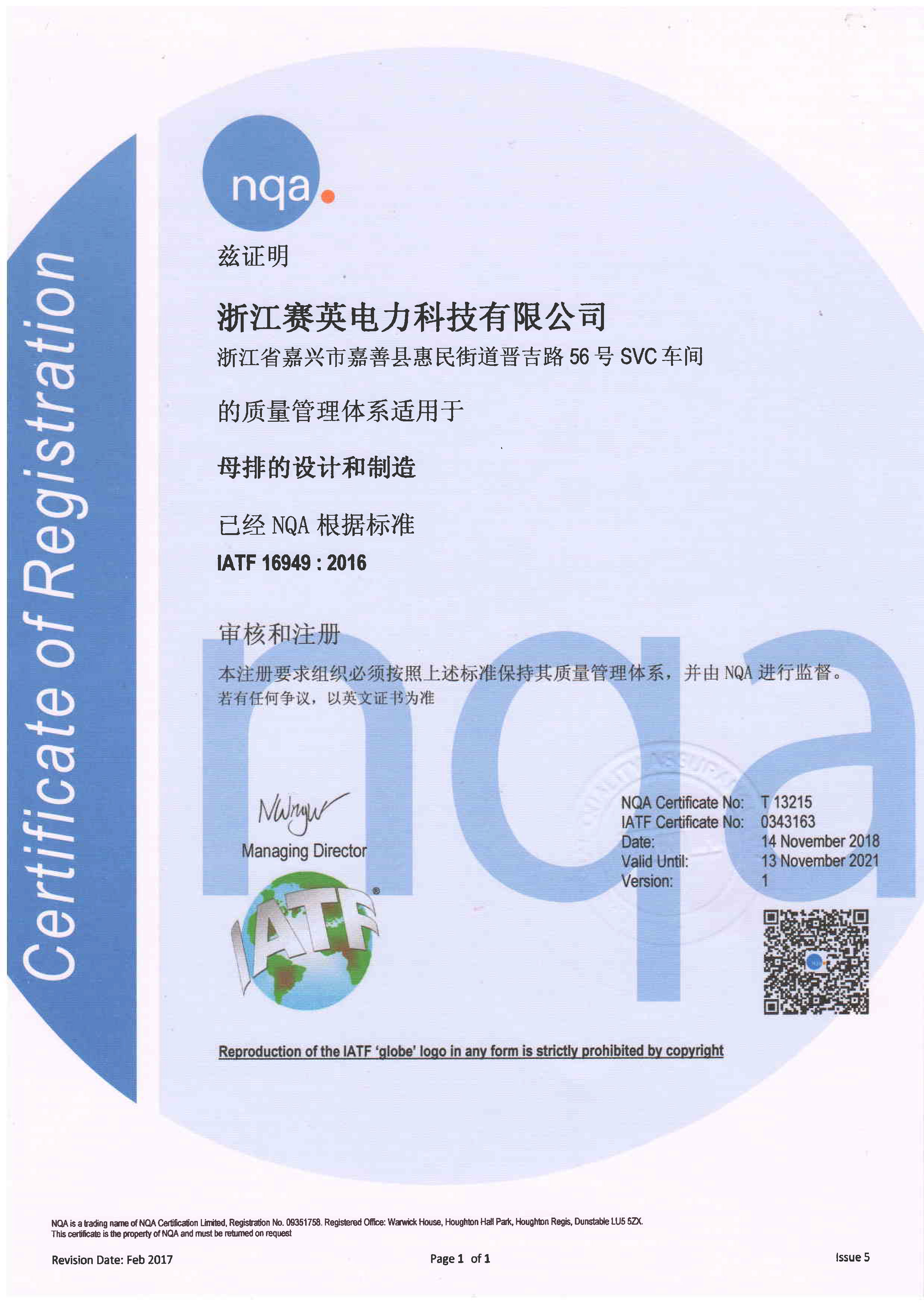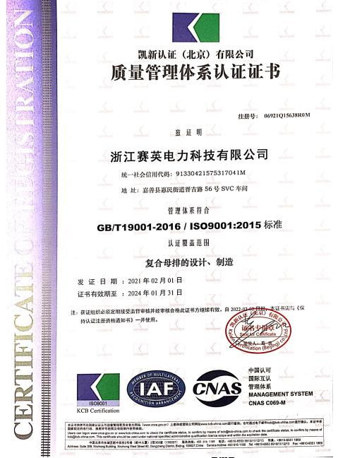 公司拥有先进的复合母排设计理念与制造工艺,同时瞄准国际上的行业技术发展趋势,不断提升产品的技术品质。公司已通过ISO14001、ISO9001、IATF16949 体系认证,拥有国际先进的复合母排自动化生产线与检测线,充分保证了复合母排产品的生产效率与质量。